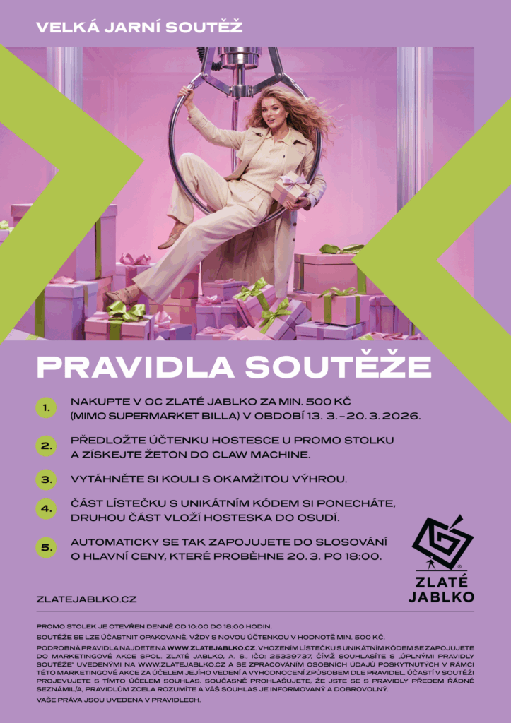 Soutěž probíhá v Obchodním a zábavním centru Zlaté jablko, nám. Míru 174, 760 01 Zlín, v